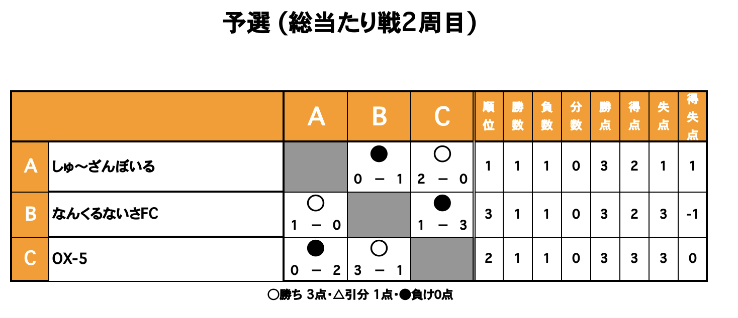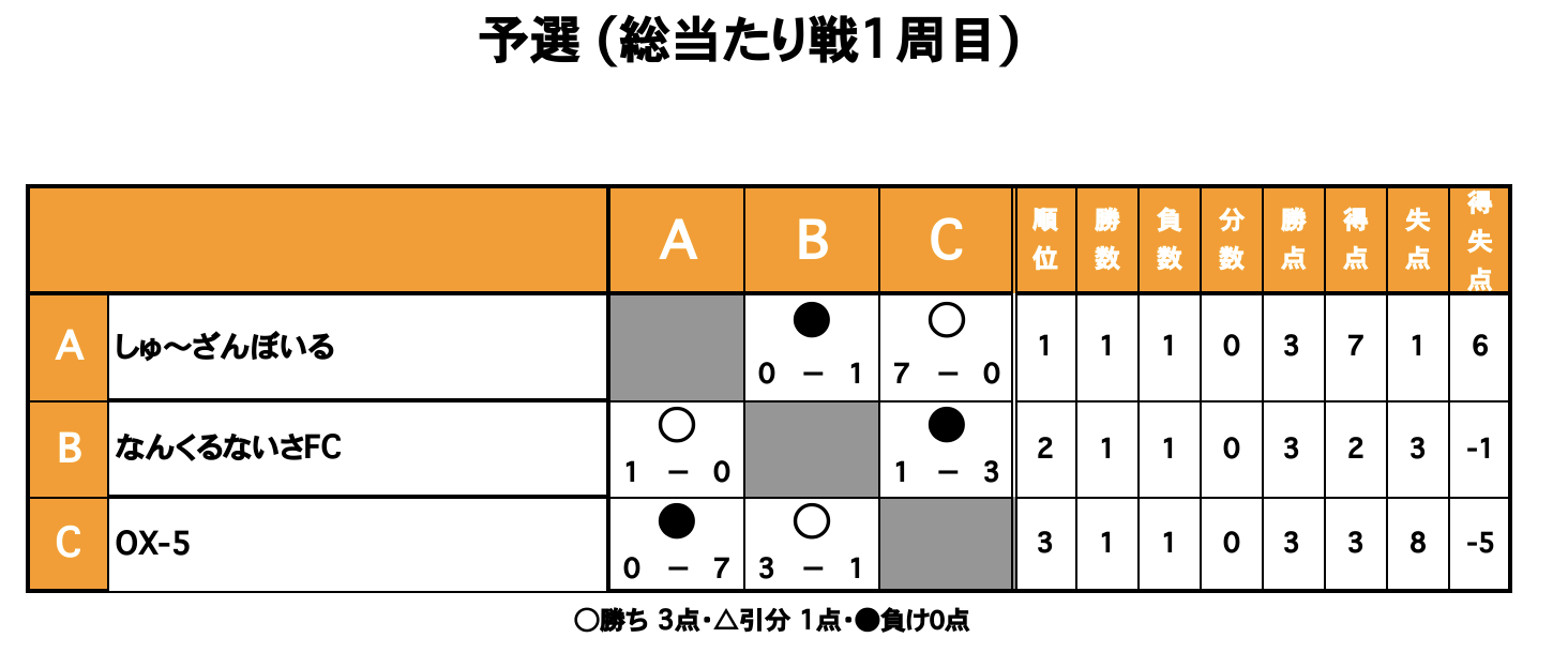大会の方式は3チームによる1試合6分の総当たり戦3周 (予選リーグ)+順位決定戦でした!結果はこちら!!